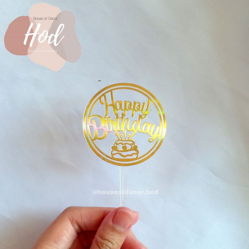 Name: Topper Plastik Happy Birthday Small Hiasan Kue Tart Ulang Tahun Gold Rainbow Colorful Bulat