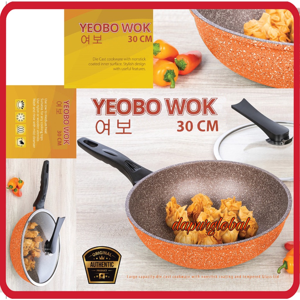 Deskripsi Panci Anti Lengket GRANITE ORANGE NEW YEOBO 30cmKini dengan tutup kaca type Z tempered glass (lebih mewah, kuat dan tahan panas)- granit orange yang akan mempercantik suasana dapur anda- anti lengket- dengan spiral bottom (untuk panas yang merata, cepat panas dan hemat energi)- kwalitas premium- food grade- tahan gores- tebal (sehingga masakan matang sempurna)- handle nyaman dipegang dan tidak panas- Original Yeobo Korean- Dimensi produk : diameter 30 cm, tinggi 10 cmCara pasang knob tutup kaca : https://youtu.be/D7Krqf5mkXkBarang yang kami jual adalah WYSIWYG yang artinya adalah : What You See Is What You Get, karena foto yang kami pajang adalah foto asli produk yang akan anda terima, barang kami pastikan asli, baru dan dikirim dalam keadaan utuh dan bagus.Terima k
