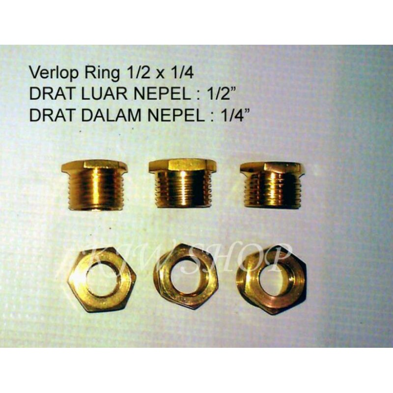 Name: Verlop Ring Kuningan 1/2 X 1/4 Verlup Ring 1/2" X 1/4" Kuningan Verlop Drat Luar 1/2inch Dalam 1/4