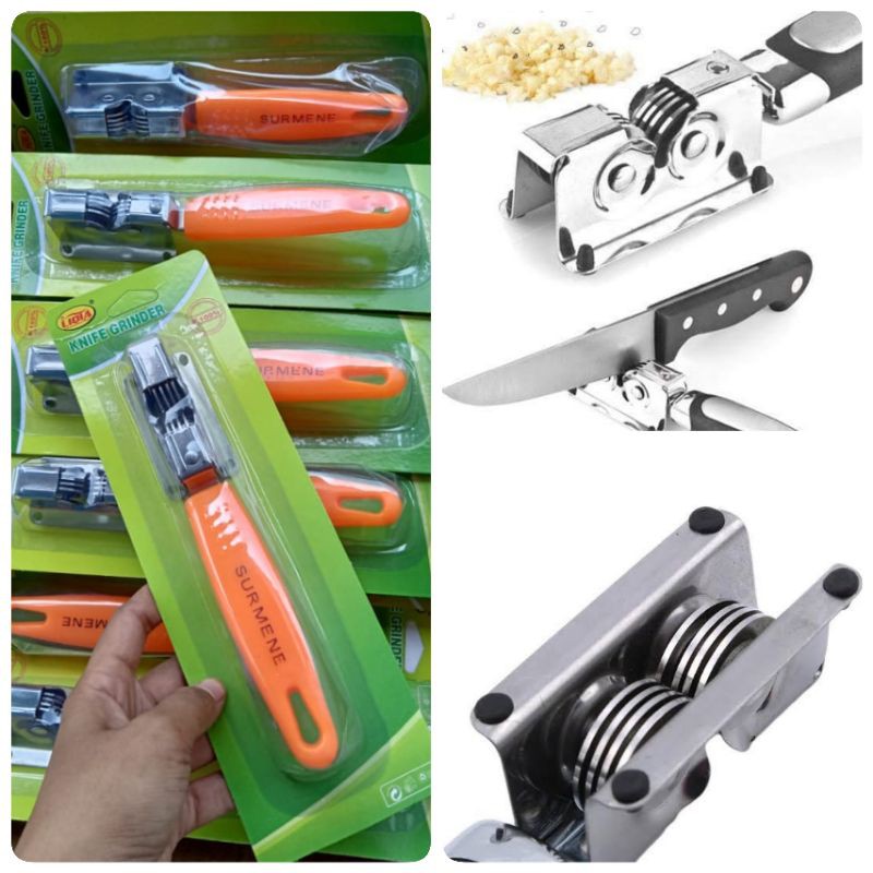 Asah Pisau Stainless Stell SurmeneAlat pengasah pisau dan gunting yang penggunaannya paling simple dengan hasil yang super tajam dengan cepat.Pisau atau gunting akan menjadi tumpul jika telah lama digunakan, namun untuk membuangnya begitu saja rasanya sayang juga. Alat unik kecil ini, bisa mengasah semua jenis pisau dan gunting, tidak memerlukan waktu banyak, praktis efisien dan hemat biaya.Cara Mengasah Pisau:- Pegang gagang Asahan Pisau Surmene yang kuat dengan tangan kiri.- Pegang gagang pisau dengan tangan kanan, lalu mata pisau diletakkan ditengah2 (diantara pertemuan lingkaran lempengan metal).- Tarik 1 arah kebelakang (mundur) sebanyak 3-5 kali tarikan, jangan didorong (jadi bukan maju mundur).- Selesai.Ukuran: 18.5 x 3 x 3.