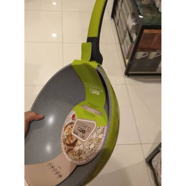 Cooking ColorWajan Wok 28cmBahan aluminum, dgn lapisan marble anti lengketReady warna hijau & c