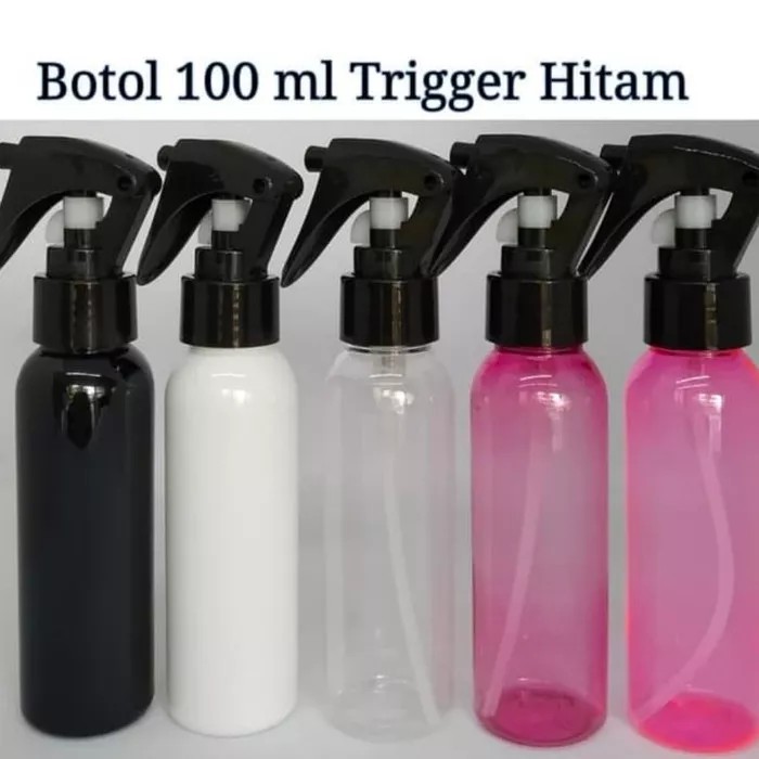 Botol pet BR 100 ml variant warna dengan tutup trigger warna hitam, ready s