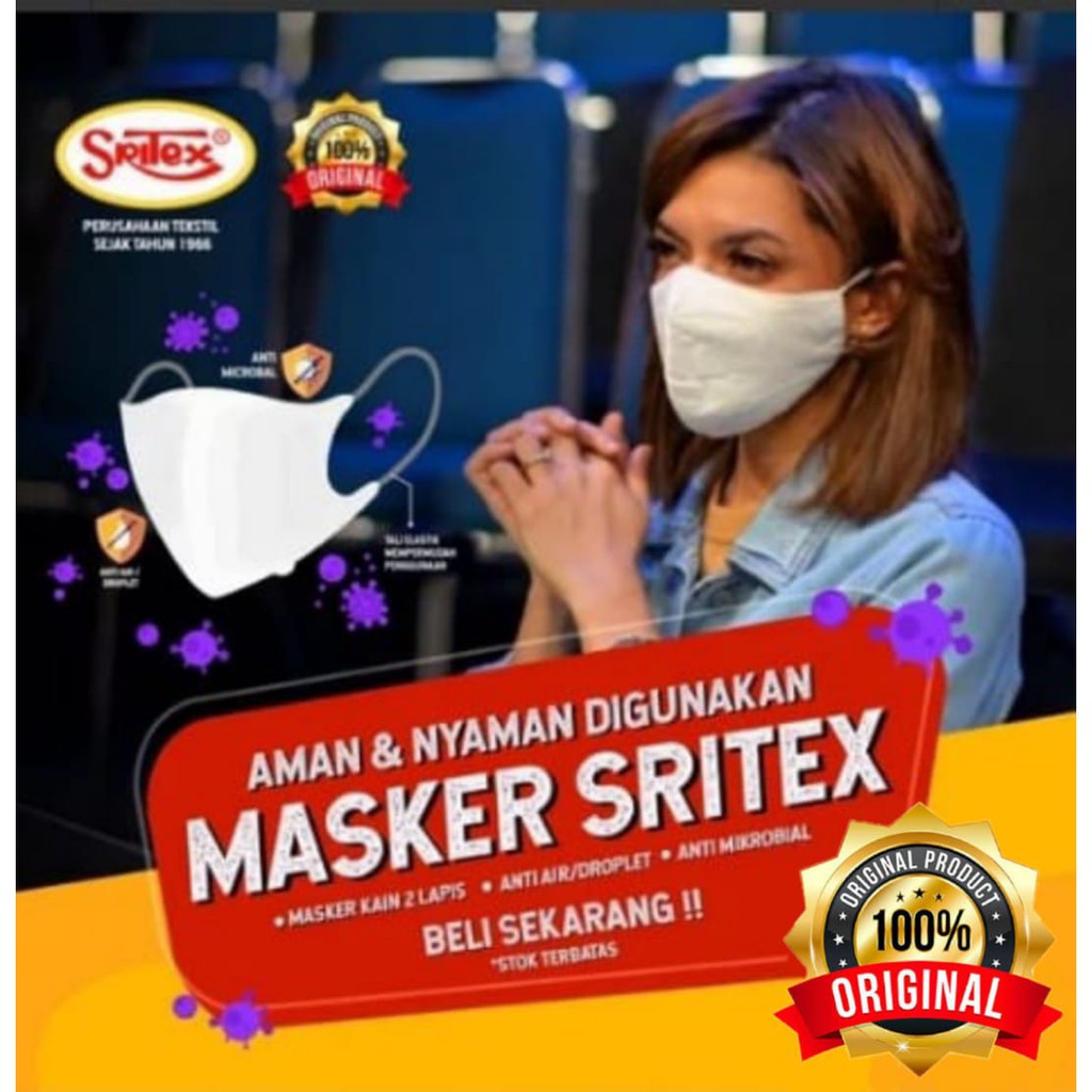 Name: Masker Kain Sritex Original Premium Non Medis Anti Air Anti Microbial 2 Ply Lapis Warna Putih Murah