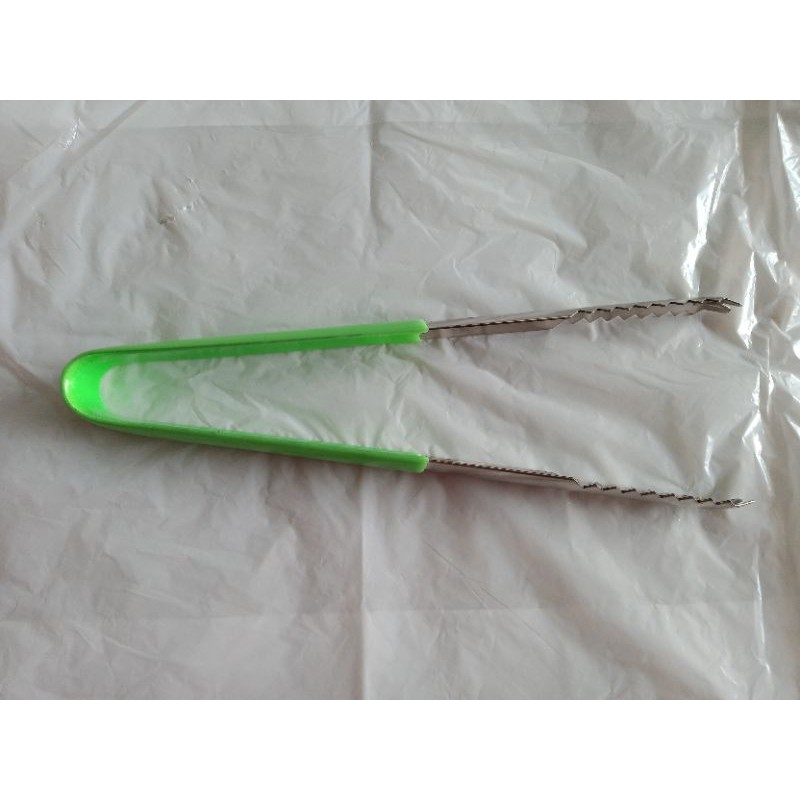 ukuran 6cmCapitan atau biasa dikenal penjapit makanan.ada varian warna merah.hijau,biru.tdk bisa request warna Krn tergantung stock yg ada. bahan kuat stainless steell dilapisi gagang karet anti panas. Tidak len