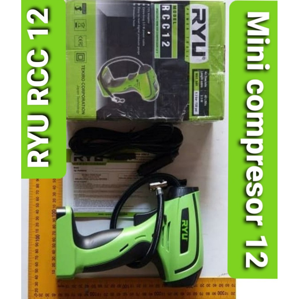 Deskripsi RYU RCC12 Pompa Angin Ban Mobil DC Mini Air Compressor 12V KompresorRYU RCC12 adalah kompressor angin portable yang menggunakan listrik DC sehingga dapat dipakai pada adaptor lighter mobil untuk pengisian ban mobil maupun motor anda.FITUR- 12 V Adaptor- Extra Long 3.5 m Power Cable- Easy to Read Digital Pressure Gauge- Pressure Hose- ADA PENGUKUR TEKANAN DI BAGIAN ATAS ( LCD )( bisa distel psi tekanan seperti pada isi angin ban pada nitrogen2 yang ada pada pom bensin )Spesifikasi :Model RCC12Voltage 12 VWorking Pressure 8.3 Bar / 120 PsiAir Flow Rate 40 L/MinLength Cable 3.5 MAPA SAJA YANG TERMASUK DIDALAMNYA?1 Unit RYU RCC121 Pcs Kabel 3.5 M1 Pcs Manual Book1 Pcs Kartu GaransiGARANSI1- selama 6 bulan SUKU CADANG GRATIS berlaku 1 kali Reparasi2- Suku cadang discount 40% berlaku 1 kali Se