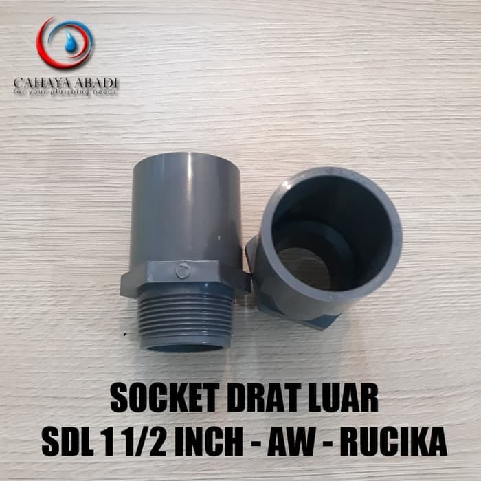 FITTING PENYAMBUNG PIPATYPE : SOCKET DRAT LUAR / SDL AWUKURAN LUBANG DRAT : 1 1/2 INCHUKURAN LUBANG PIPA : 1 1/2 INCHMERK : RUCIKABAHAN : PVC TE