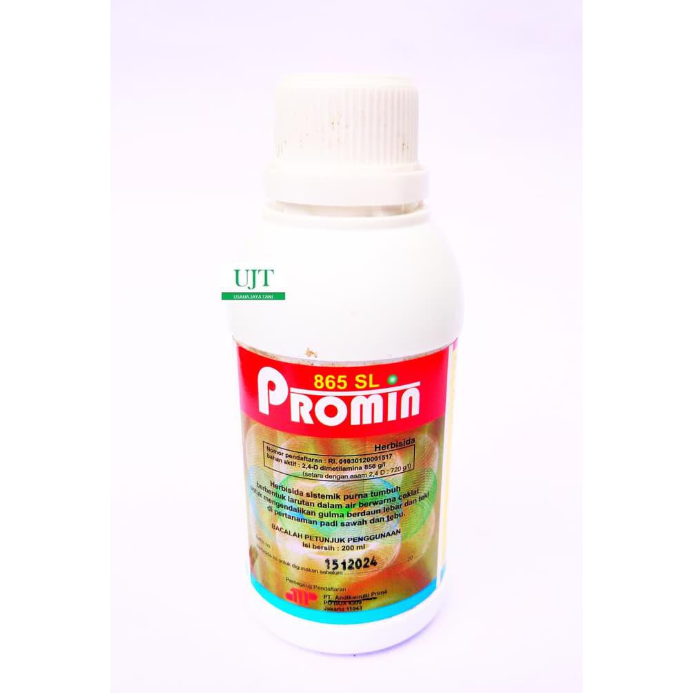 Ready stock kak,,,silahkan order !!!! keburu habisss...PROMIN 865 SL Herbisida sistemik purna tumbuh berbentuk larutan dalam air berwarna coklat untuk mengendalikan gulma berdaun lebar di pertanian padi, sawah dan tebuMengapa Product di Usaha Jaya Tani (UJT) Murah?Karena UJT adalah distributor Pupuk untuk area Bekasi.Semua product kami dari Pabrik langsung, jadi 100% product origin