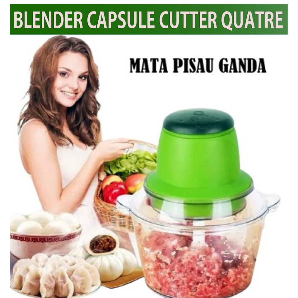 Pisau blender kapsul terbuat dari bahan stainless yang bagus dengan ketajaman yang luar biasa sehingga dengan mudah memotong buah buah,daging. pisau blender kapsul ini didesain diatas dan dibawah sehingga hasilnya benar benar halus dan merata. Memasak tak lagi sulit ketika kamu menemukan cara yang lebih efisien untuk menghaluskan bahan-bahan dasar dalam pembuatan masakan. Kamu juga ngga perlu ribet-ribet lagi ketika ingin membuat jus ataupun smoothy.Capsule Cutter bisa menjadi solusi tepat bagi kamu untuk mempersiapkan masakan dalam waktu yang lebih singkat. Pemakaiannya sangat mudah dan tidak rumit untuk dirawat. Karena menggunakan 4 mata pisau yang tajam dan lebat, sehingga prosses nya lebih cepat di bandingkan blender pada umurnya, selain itu hemat pemakaian listrik. Desain bentuk blender yang unik seperti kapsul dengan warna cantik, sangat membantu kegiatan ibu rumah tangga. Bisa digunakan untuk memblender :- Prosses makanan bayi - Sayuran - Buah buahan - Daging - Kacang Kelebihan Capsule Cutter Quatre :- 4 pisau tajam - Mudah digunakan - Mudah dibersihkan - Bahan Acrylic - Daya 260 watt (DA*) - Ukuran : Panjang 23,3 cm x Lebar : 11 cm - Material : Plastik Food Grade- Watt : 120 Watt keunggulan dari prodak ini adalah dalam waktu 8 detik daging kalian bisa lebih lembut dan halus tanpa harus menunggu lama dengan ini waktu kalian tidak perlu lama lama dalam mengiling supaya tidak lelahReady Warna :- Hijau- Pink- Merah- Biru