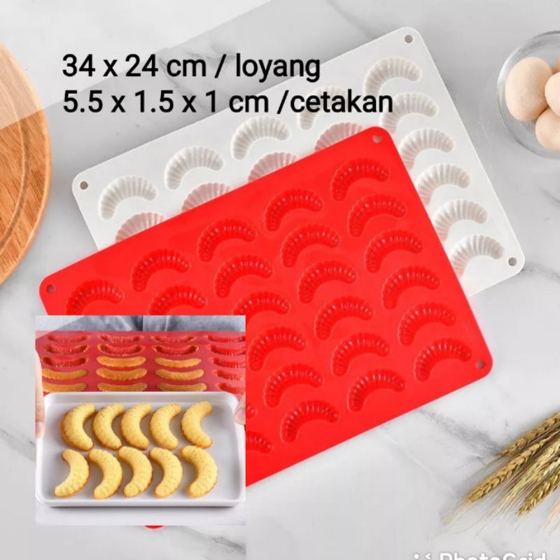 size per loyang 34x24cmper cetakan 5.5 x 1.5 x 1cmtahan panas anti lengketmasuk oven dan freezerfood grade silikon1 loyang bisa untuk 30pcs cet ulatbisa untuk cookies, gummy, fondant, cokla